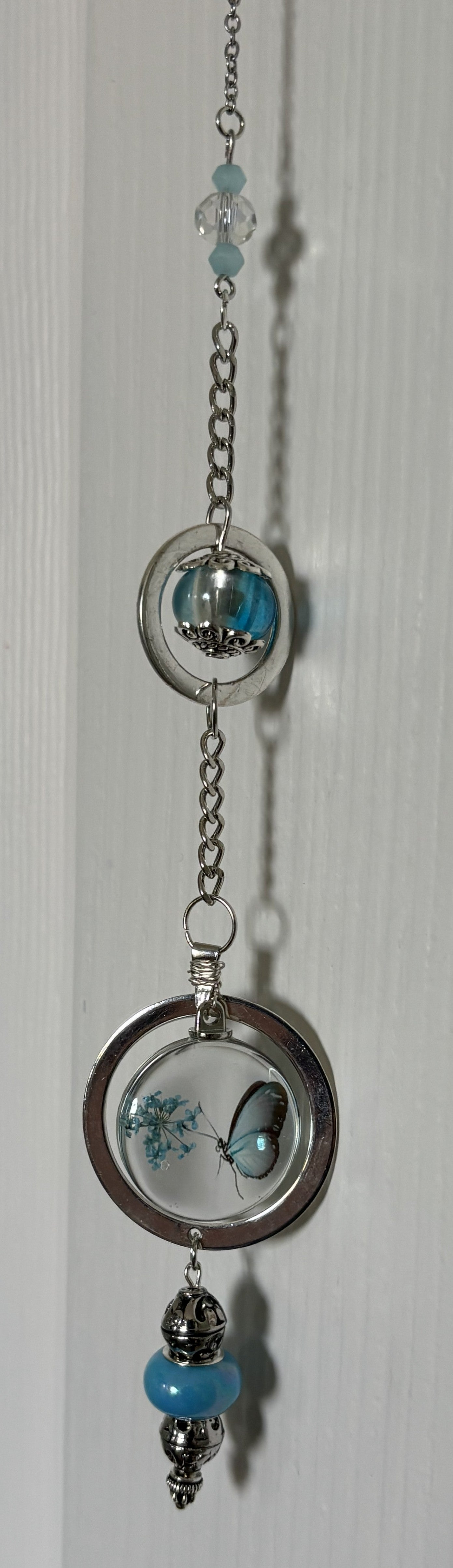 Delicate yet intentional, these Butterfly Single Strand suncatchers are designed as subtle accents of movement, light, and symbolism. Each piece features a preserved butterfly motif paired with botanical elements, suspended within a circular frame and finished with coordinating glass, crystal, and metal beads.