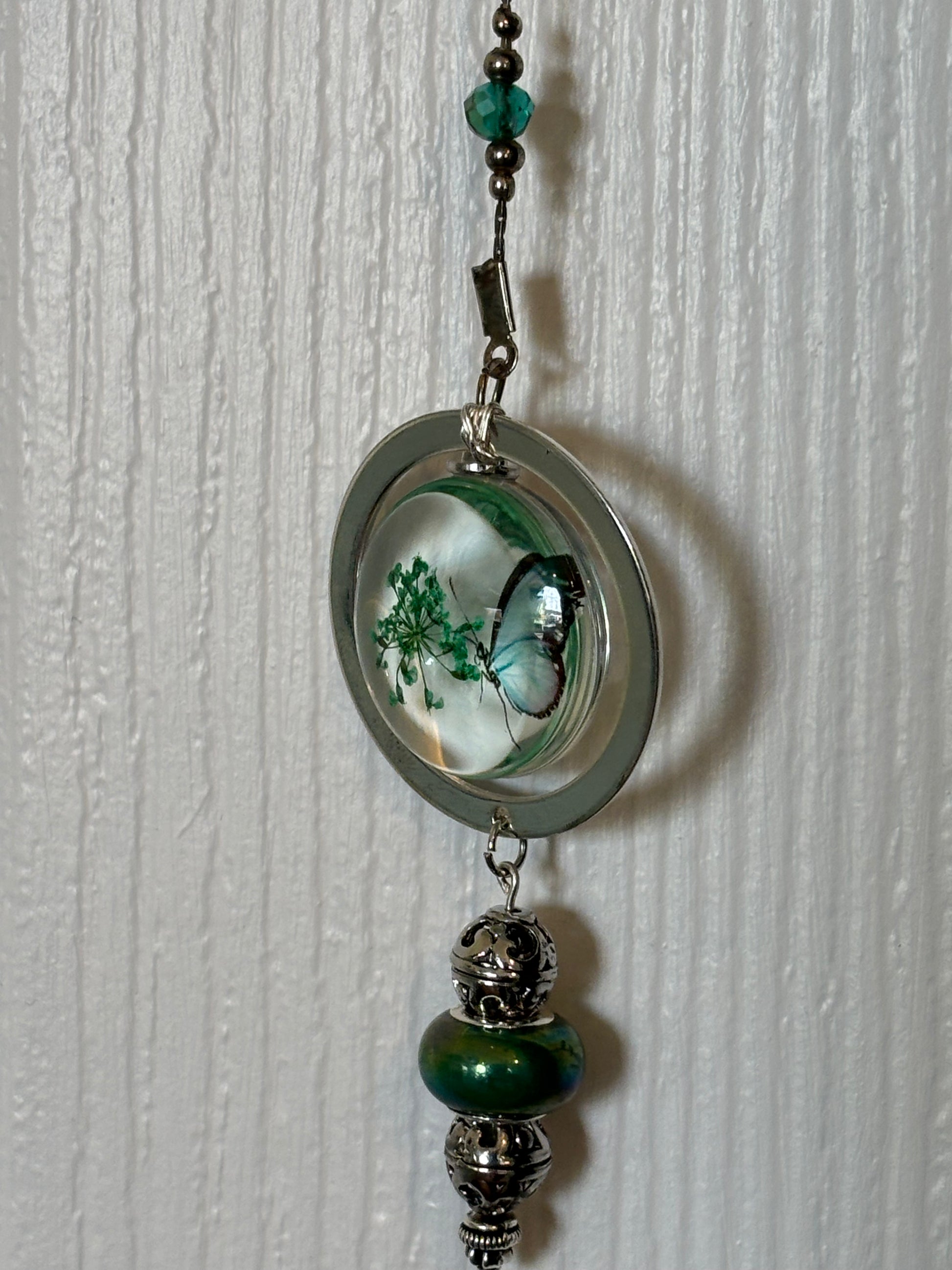 Delicate yet intentional, these Butterfly Single Strand suncatchers are designed as subtle accents of movement, light, and symbolism. Each piece features a preserved butterfly motif paired with botanical elements, suspended within a circular frame and finished with coordinating glass, crystal, and metal beads.