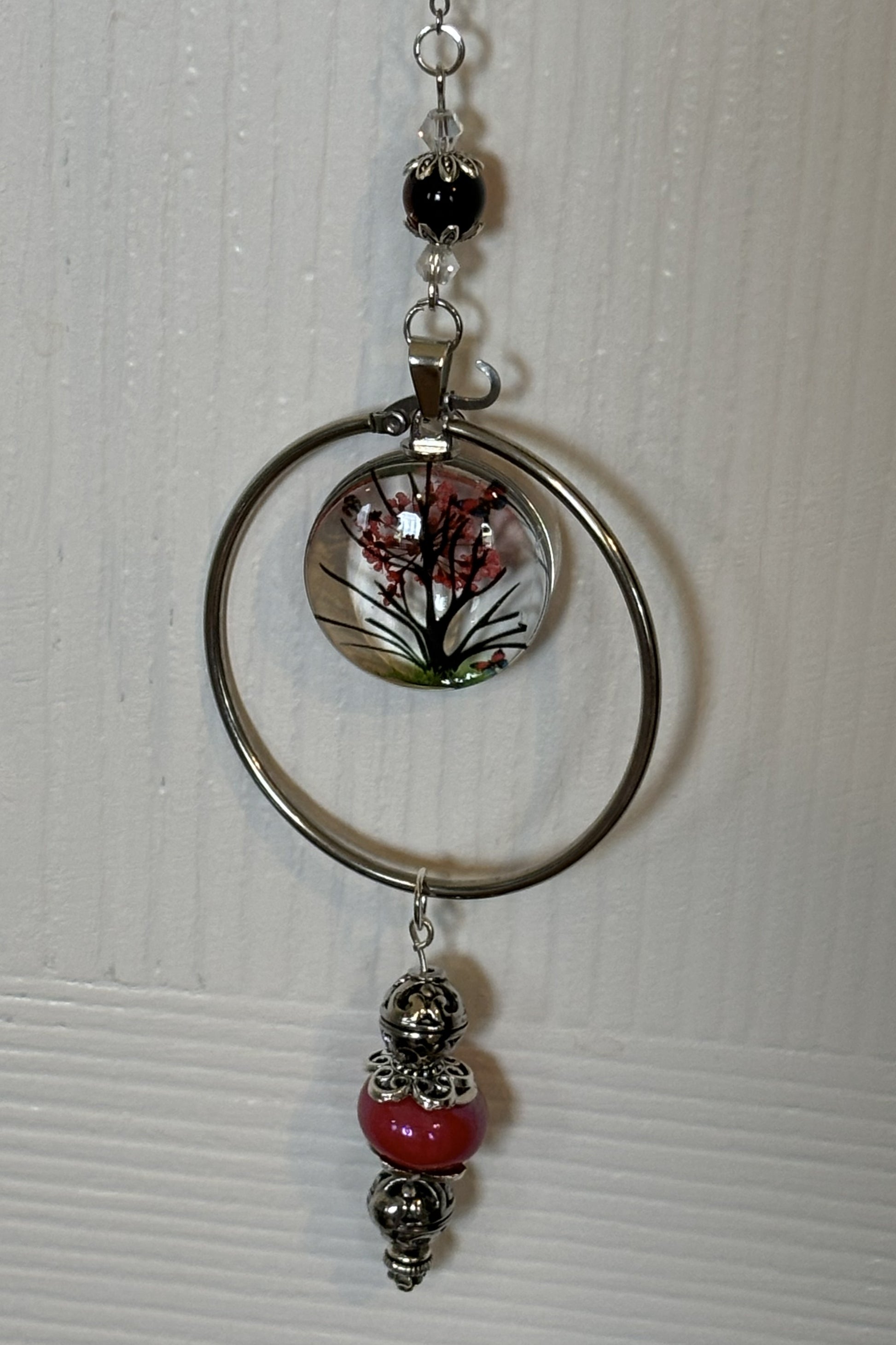 Delicate yet intentional, these Butterfly Single Strand suncatchers are designed as subtle accents of movement, light, and symbolism. Each piece features a preserved butterfly motif paired with botanical elements, suspended within a circular frame and finished with coordinating glass, crystal, and metal beads.