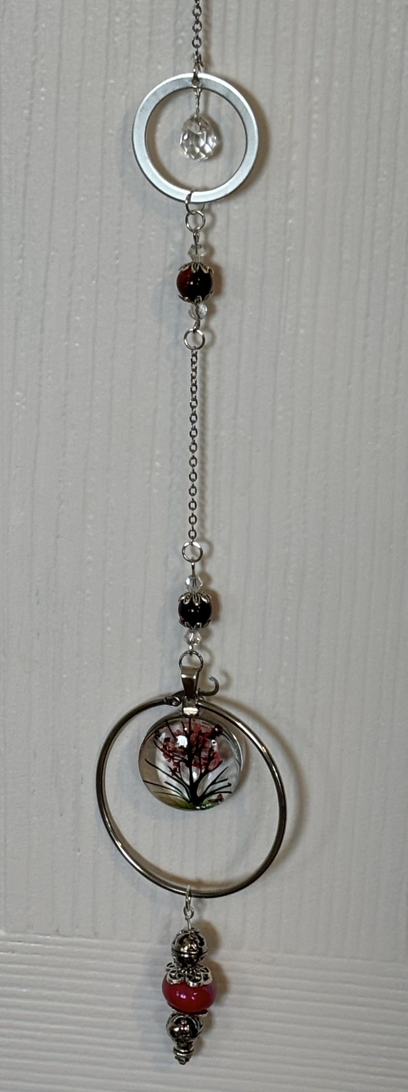 Available in blue, pink, green, and red variations, each suncatcher is individually assembled and visually unique. These strands are ideal for small windows, plant hooks, reading nooks, or anywhere a touch of softness and meaning is desired.