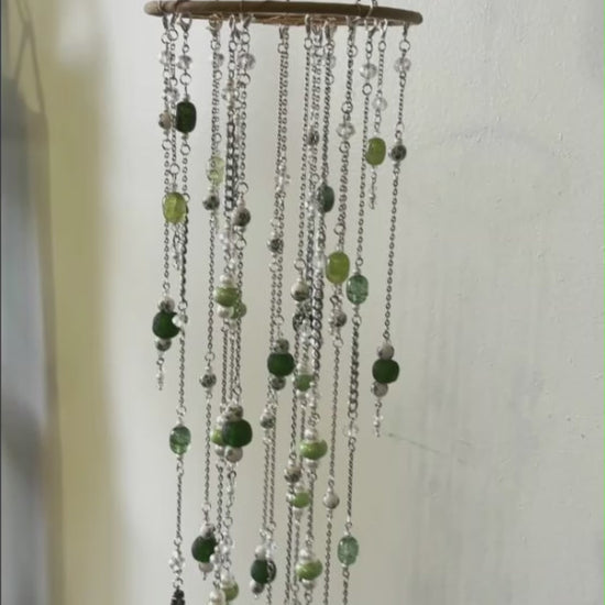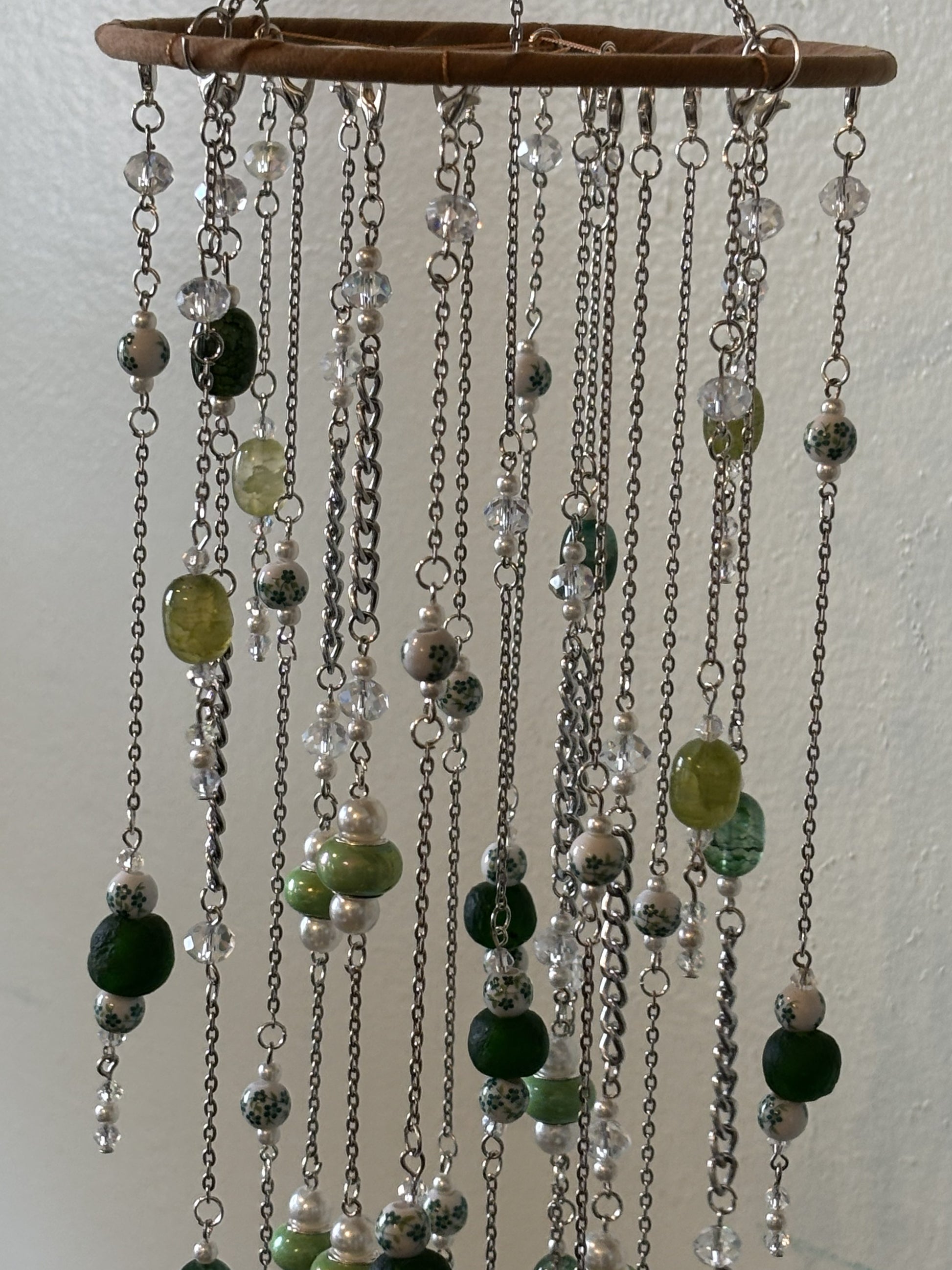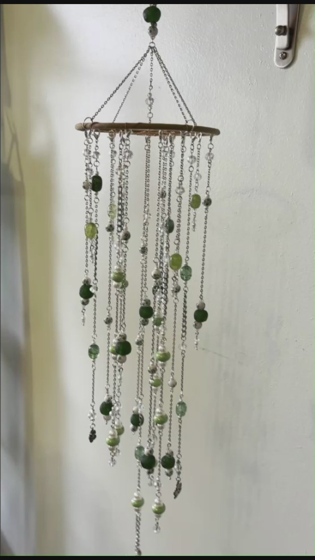 Designed to catch both light and motion, this piece creates a subtle shimmer rather than a sharp prism effect—ideal for windows, sunrooms, reading corners, or covered outdoor spaces. Each strand is individually assembled, balanced, and secured with multiple findings, making every suncatcher a small feat of hand labor and intentional design.